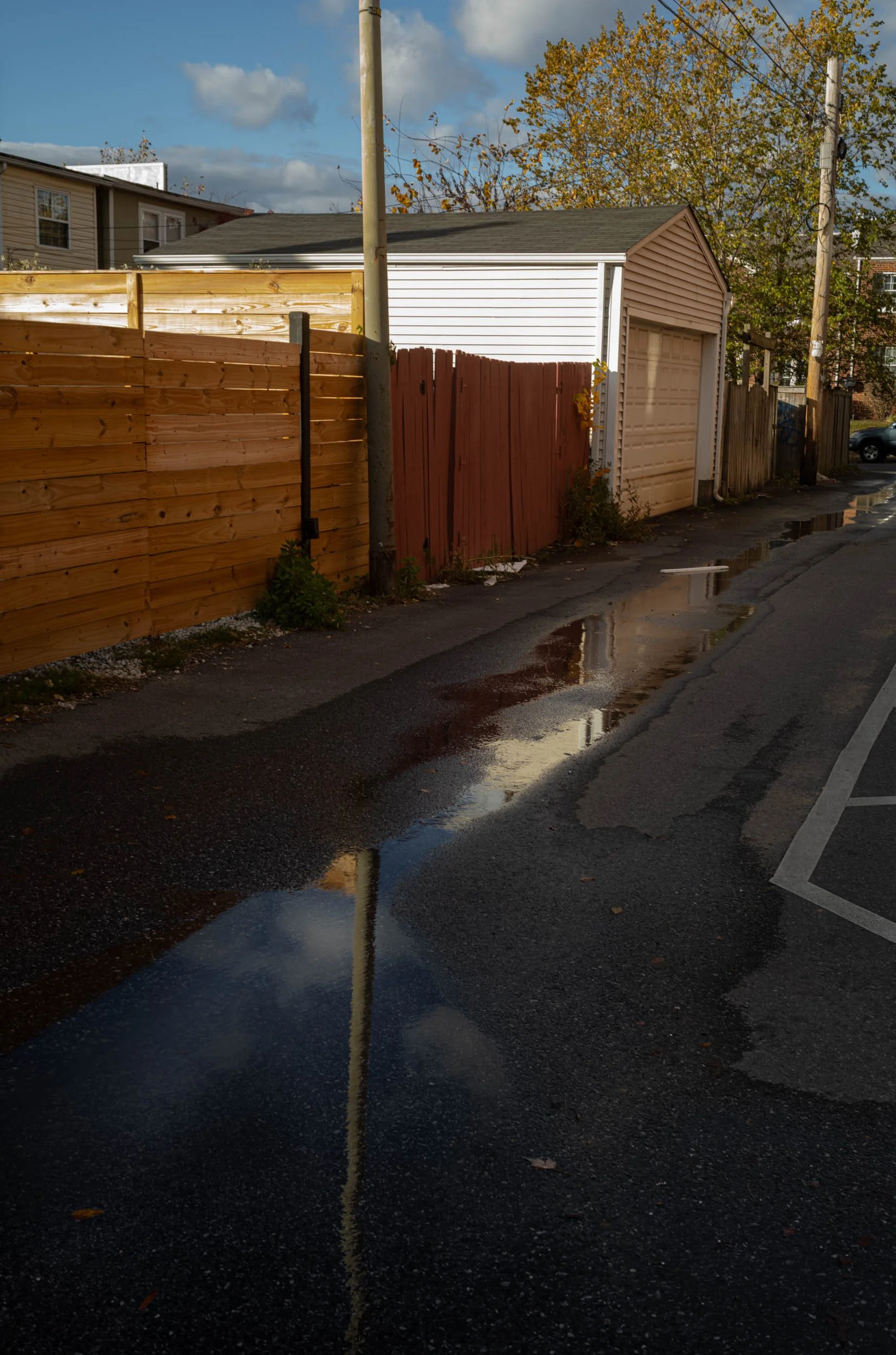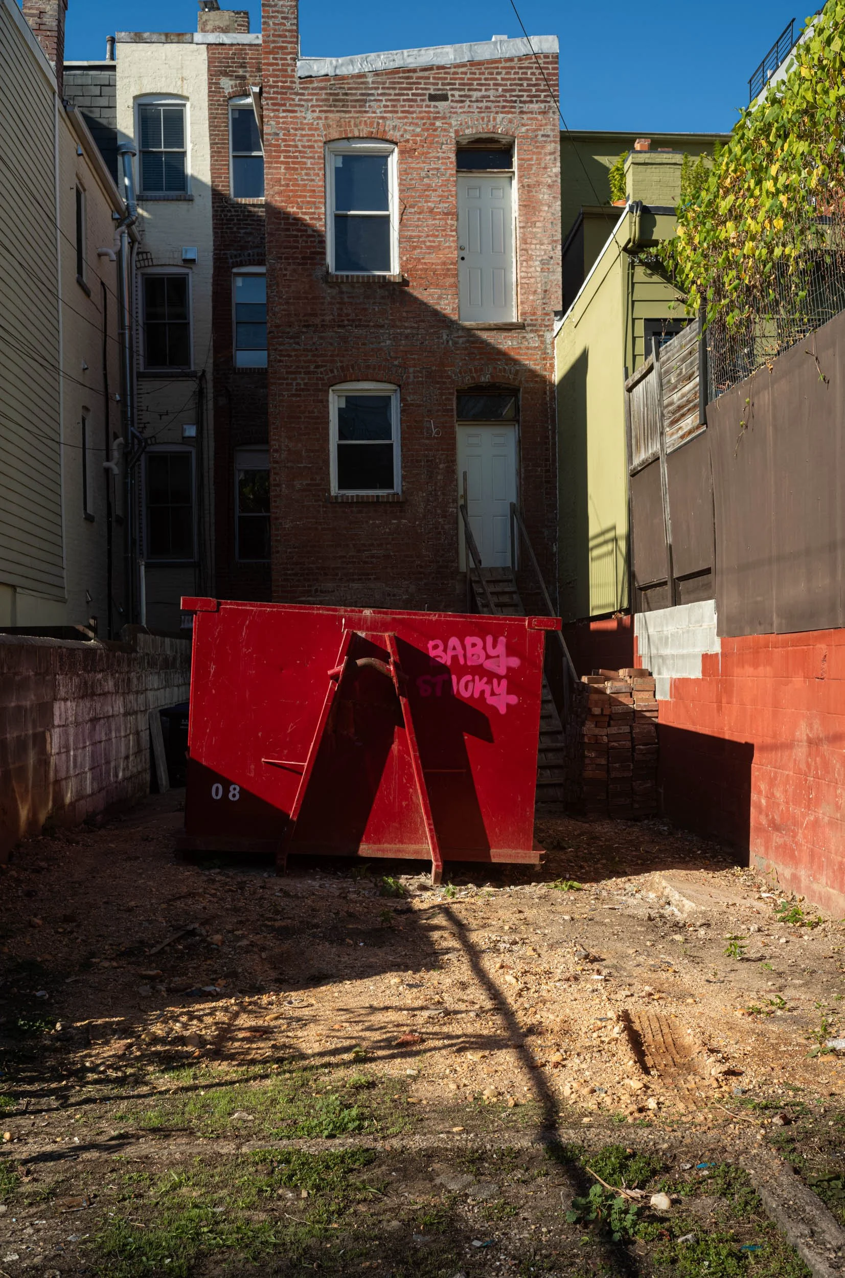 These images are part of an ongoing project examining the alleyways of the Columbia Heights neighborhood of Washington DC. Washington has always been faced with unique constraints of a designed capitol city, leading to a clash of planned versus unplanned spaces. The alleys are very much the heart of these unplanned spaces. Enabling access and pickup from the rear of residences, they are the liminal regions shielded from public view where garbage is deposited, projects are begun and left in partial completion and plantings proliferate in cracks and boundaries.