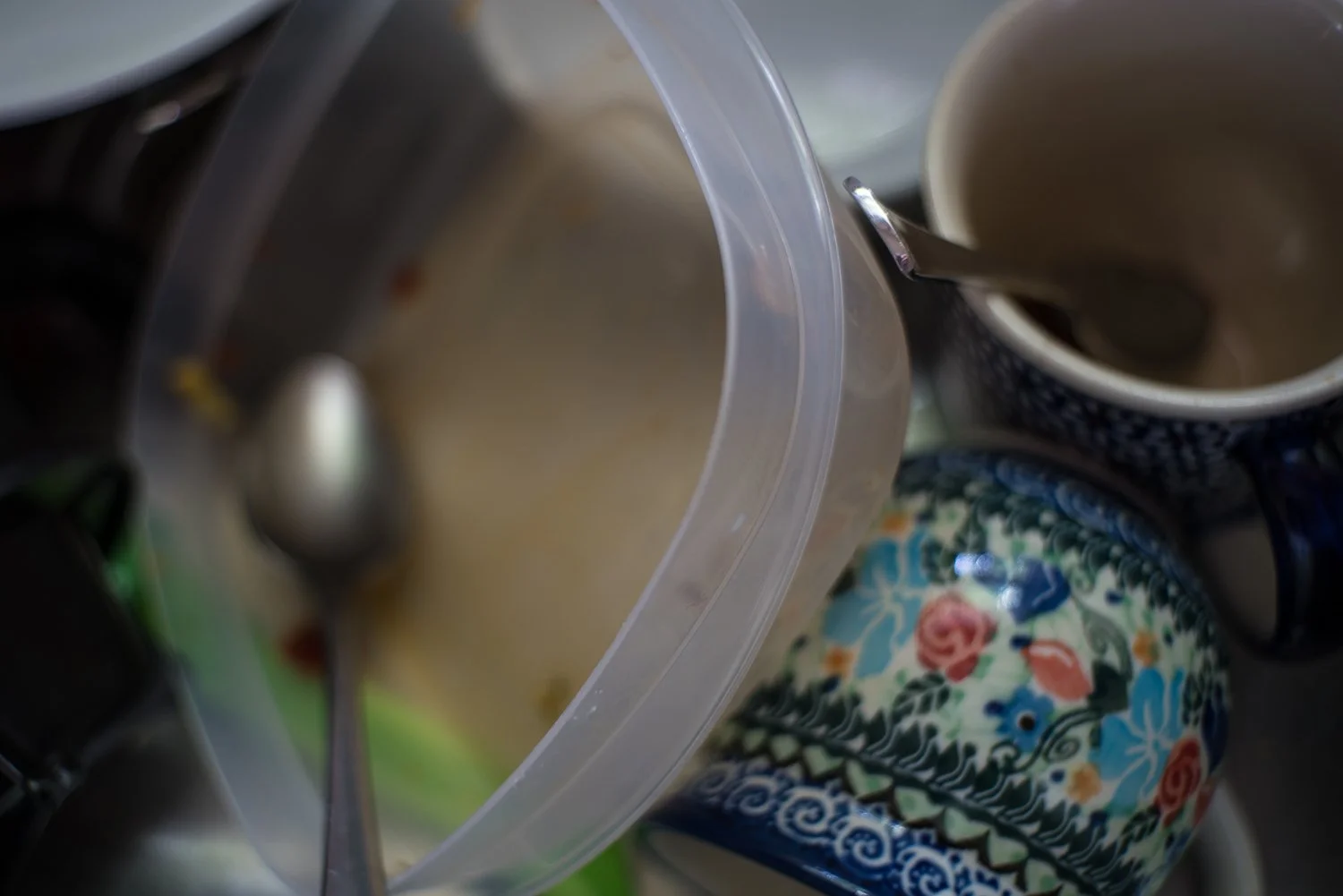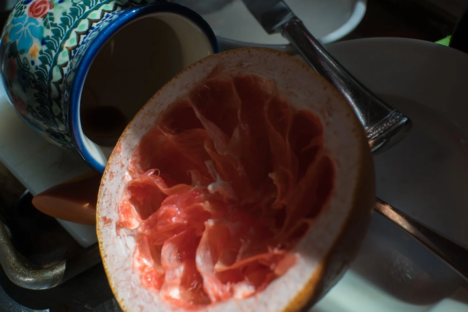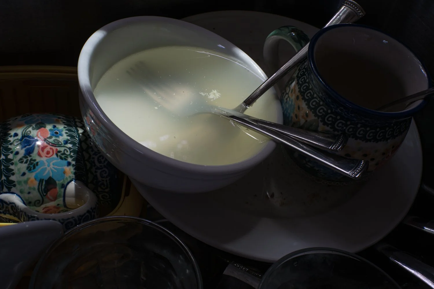 Even before Covid I worked from home. In those days things were more relaxed. There was no work-from-home routine. So sometimes the dishes didn’t get done. Sometimes the dishwasher was full. Sometimes I was just lazy. During that time, in 2018 and 2019, I found myself going to the kitchen to get a drink or snack and then, disposing with a dish and looking down, I would often discover an assemblage that demonstrated everything I love about photography. Form, shape, light, transparency, texture and the odd gasps of color from dishes, utensils and food scraps.